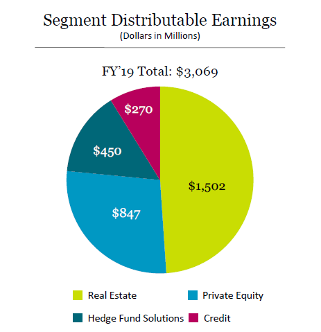 黑石的房地产业务主要分为三种策略:机会型(Opportunistic)、核心增益型(Core +)和不动产债权型(Delt)。2019年,房地产业务给黑石带来15.02亿美元的可分配利润,占公司总体的近一半。