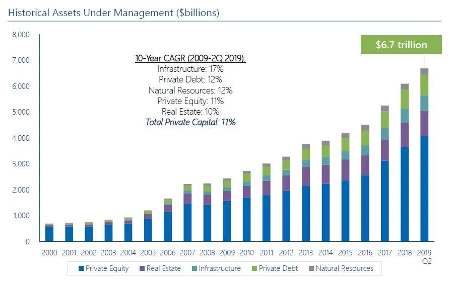 实物资产部门管理规模最小,资产管理规模为430亿美元,而在这430亿美元中,有超过一半的资产属于自然资源业务,房地产业务管理资产规模为180亿美元。自2000年以来,凯雷房地产业务资产管理规模的年复合增长率达到10%。
