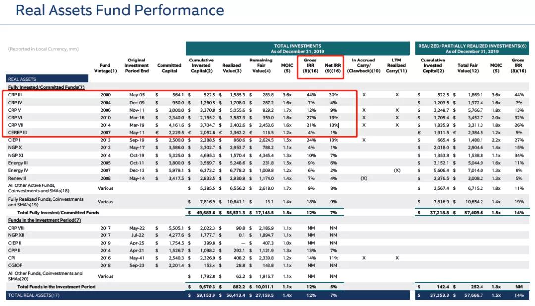 凯雷的房地产业务运营能力不容小觑。截至2019年底,凯雷房地产业务1年期集合净收益比NCREIF地产指数低0.08个百分点,5年期集合净收益比NCREIF地产指数高1.02个百分点。此外,凯雷旗下房地产基金净内部收益率(Net IRR)普遍高于15%,最高达到30%。