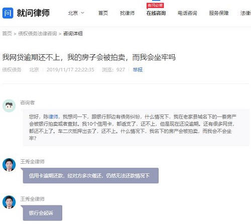 不少抱着侥幸心理的人四处打听,“我的网贷逾期还不上,我的房子会拍卖,而我会坐牢吗?”诸如此类问题。而专业律师明确告知,不但房子有可能被拍卖,还有可能被以诈骗罪入刑。