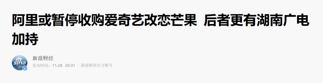 但谈了半年下来,两家竟然都跑了。11月27日,有媒体报道称阿里、腾讯暂停收购百度所持爱奇艺股份,随后阿里直接杀向芒果,成为其第二大股东。兼并是开始了,结果对象不是爱奇艺.....