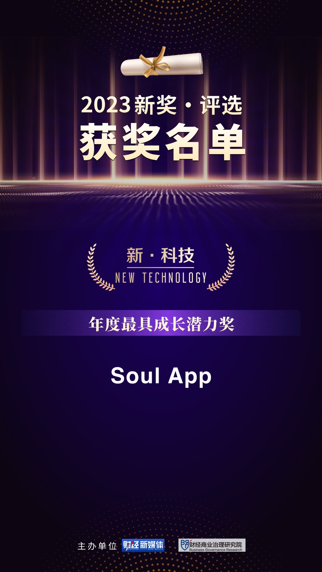 近期,由《财经》新媒体、《财经》商业治理研究院发起主办的第六届“新奖”评选活动圆满落幕。本次评选共覆盖新洞察、新科技、新消费、新价值四大领域,凭借在“AIGC+社交”领域的创新探索及所体现出的巨大成长潜力,新型社交平台Soul App获评新·科技板块“年度最具成长潜力奖”。