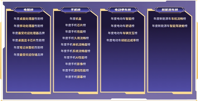 今年,我们的奖项数量再次增加,突破历史达到了22项,涵盖电脑榜、手机榜、电动车榜、新能源汽车榜共四个榜单,无论是数量还是榜单覆盖范围,均为历年最广。