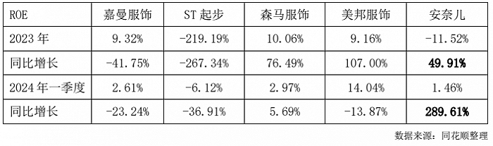 盈利能力大幅增强,ROE近3倍增长2023年报季已结束,笔者梳理出童装行业ROE指标。尽管2023年ROE仍为负,但相较上一年已有很大程度的提升,到2024年一季度扭亏为盈,ROE也随之转正,由此带来同比接近3倍的井喷式增长,而同行业公司几乎都难以维持上一年的盈利能力,业绩大多逆水。当然,ROE只是报表呈现的分析结果,我们来看看安奈儿在过去一年到底做了哪些努力和改变。