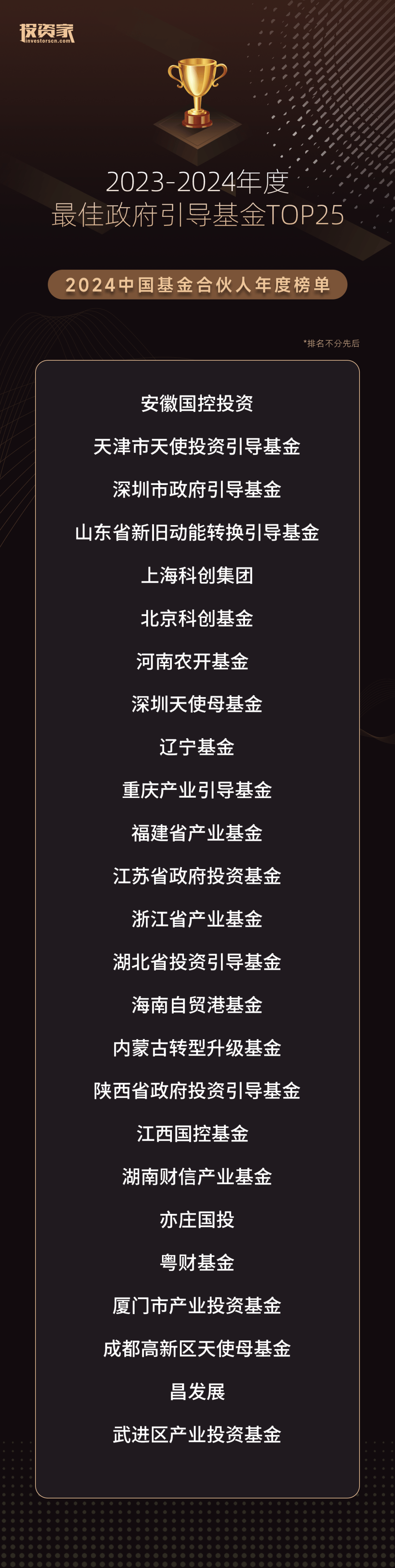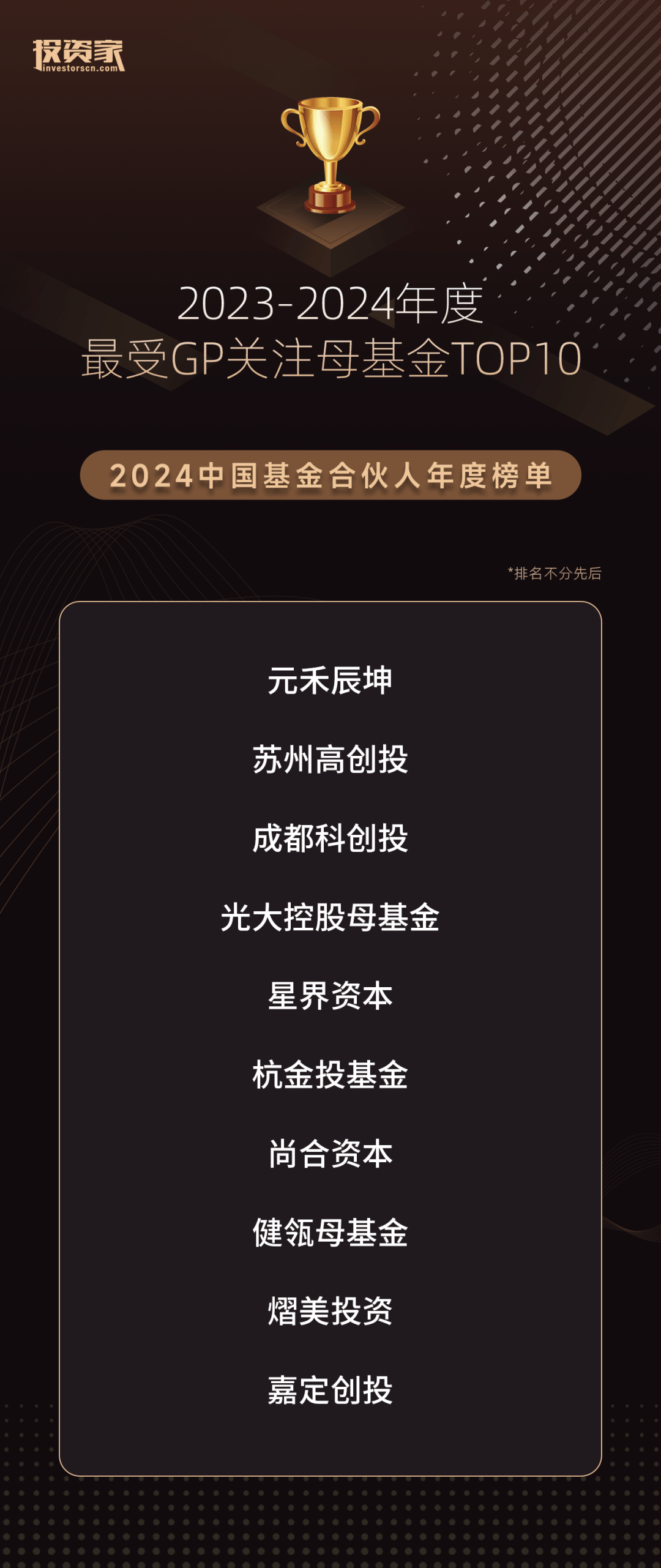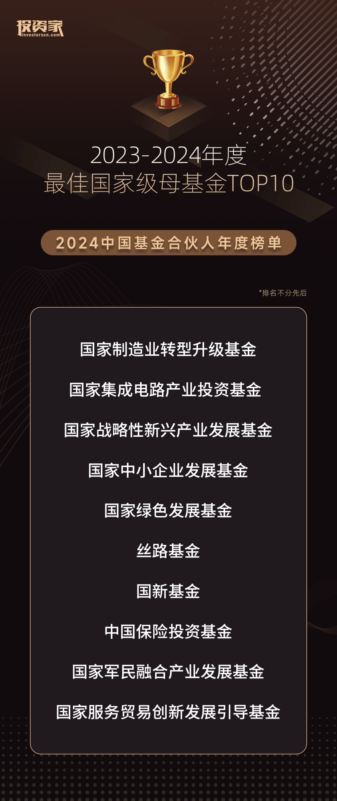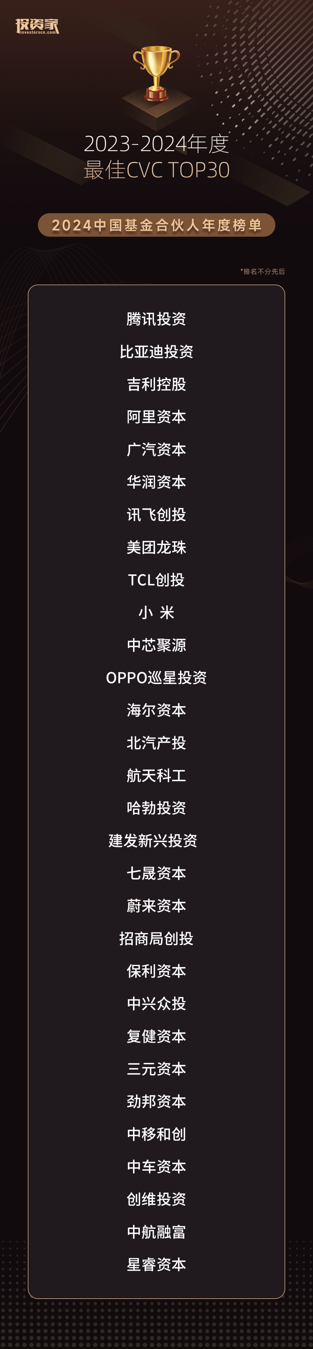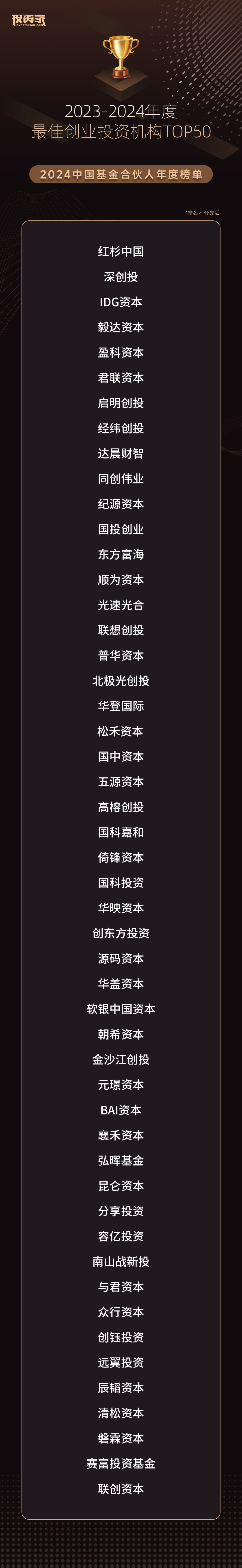 为表彰那些在新兴领域取得优异成绩的VC/PE、产业资本、母基金,投资家网延续以往,通过问卷调研、数据核查等流程,发布“投资家网·2024基金合伙人年度榜单”,持续挖掘闪耀创投圈的机构与个人。