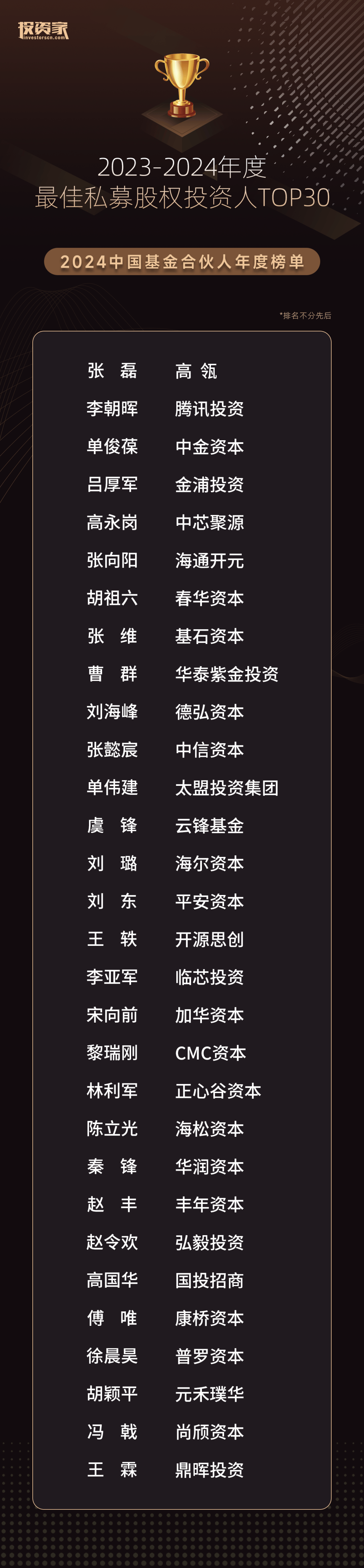 以下为“投资家网·2024基金合伙人年度榜单”: