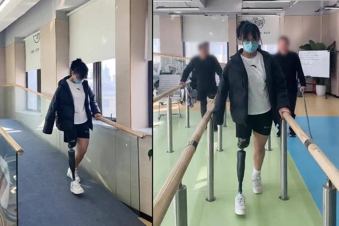 甘俊穿戴BrainCo智能仿生腿参与比赛、进行训练