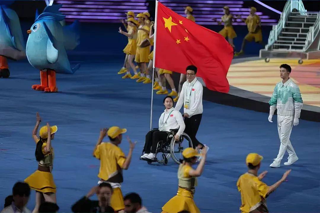 蒋裕燕在杭州第4届亚残运会闭幕式担任中国体育代表团旗手,图源:中国青年报