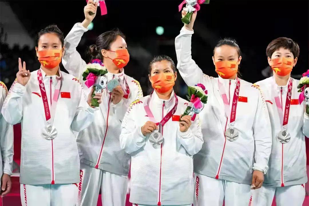 胡慧子(左二)与队友获得东京残奥会女子坐式排球银牌,图源:“扶风融媒”微信公众号