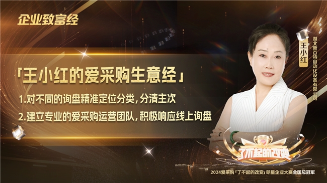 经过一系列的努力,爱采购为新百特带来了显著的回报:不仅有日益攀升的订单,更积累了众多高质量的B端客户。现如今,新百特已完成从传统线下营销模式到线上数字营销的华丽转型。“在当下竞争激烈的环境,50%的订单都来自于爱采购的线索转化,更加坚定了我们持续投入爱采购线上运营的决心。”王小红将继续在数智化转型的道路上迈出坚实的步伐。