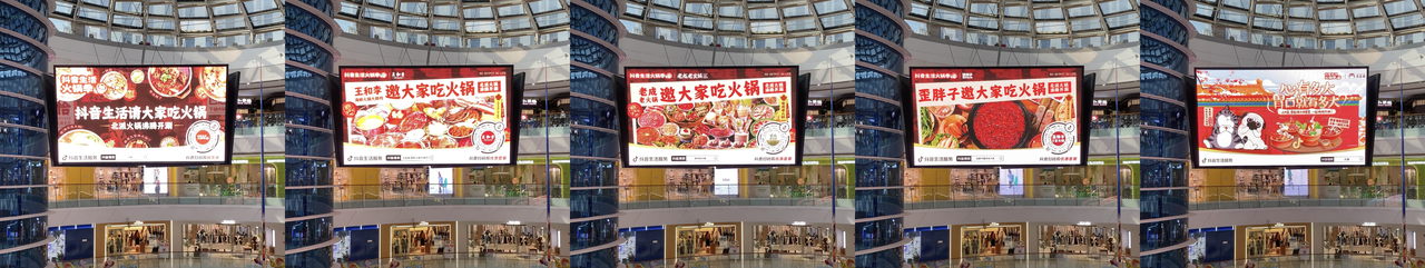 同时,在线下,火锅商家通过物料进店,北京、沈阳、济南、南京核心商圈的高密度户外大屏投放,不仅有效带动了区域热度的持续升温,还进一步扩大了品牌的曝光面积,增加了影响人群的受众范围。