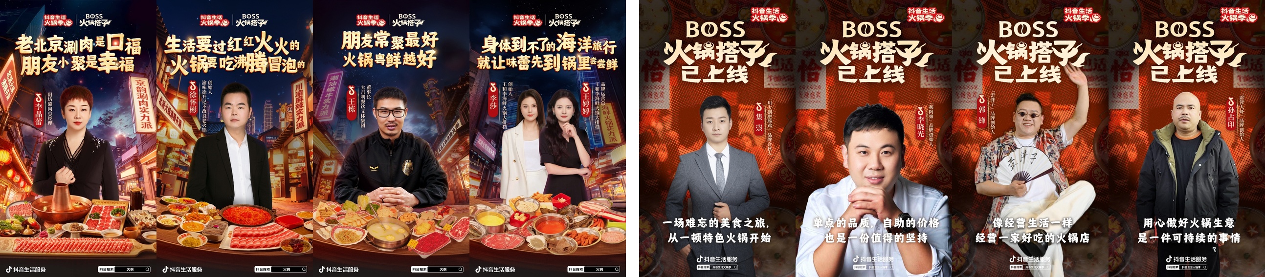 此外,活动期间,平台还在内容领域进行了一系列动作,为商家本身带来流量爆发,不仅以北派火锅吃货秘籍「涮蘸捞」态度海报,全方位展现北派火锅的魅力,更邀请杜海涛、飞儿乐团、高晓攀、黄子弘凡、柳岩、毛俊杰、王濛、许佳琪、信乐团、颜人中、周觅、翟子路12位明星化身「抖音生活火锅季星推官」,引爆食客关注,成功吸引海量人群加速破圈。同时,活动另辟蹊径邀请8位商家创始人,以“BOSS火锅搭子”的身份彰显商家诚意,无形中拉近品牌与用户的距离。