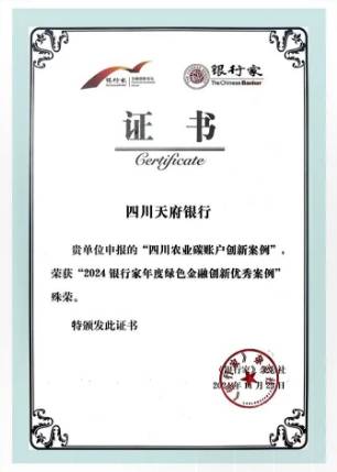 银行家金融创新论坛自诞生以来,已历经17载春秋,伴随着中国经济的蓬勃发展,逐步成长为金融业创新产品与服务展示的权威平台。在此次发布会上,经过《银行家》杂志专业评委的严格初审、复审及组委会的综合评定,四川天府银行凭借其在金融改革和支持实体经济方面的卓越贡献,特别是在绿色金融领域的“农业碳账户”创新实践,荣获“2024年度绿色金融优秀案例奖”。