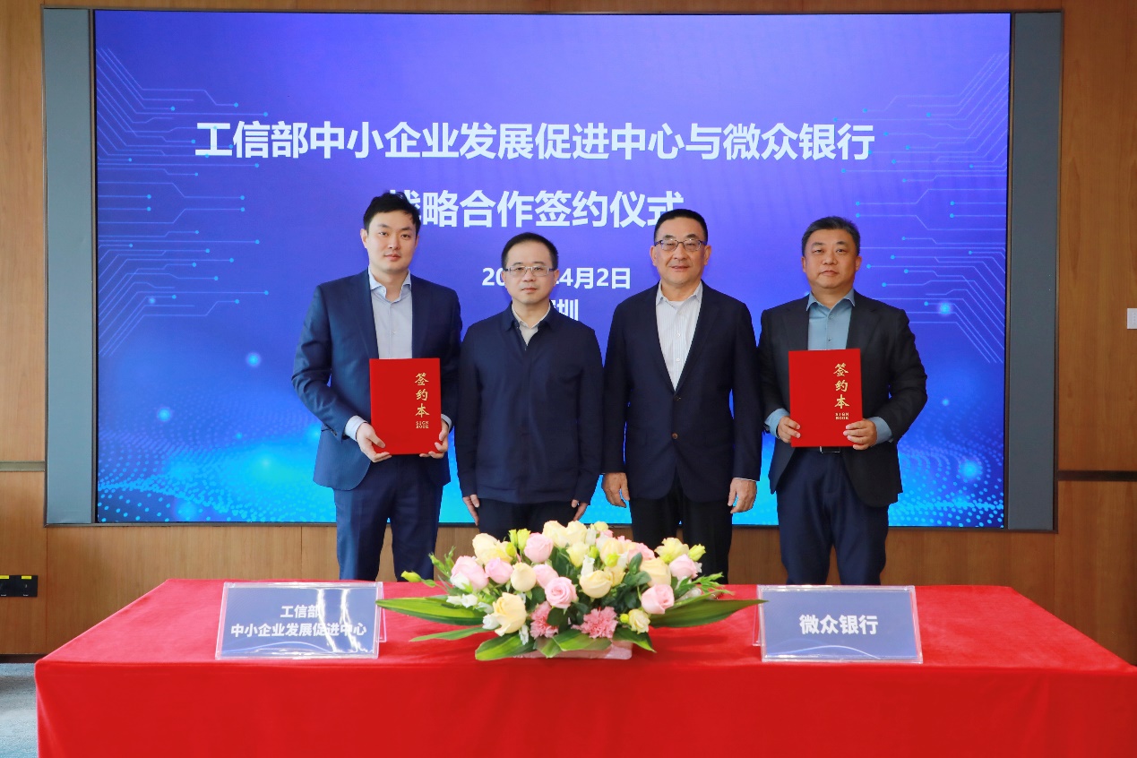 2025年4月2日上午,微众银行与工业和信息化部中小企业发展促进中心在深圳正式签署战略合作协议,双方将在中国中小企业服务网建设、服务体系互联互通、金融产品联合创新、产业链金融以及特色产业集群建设等领域开展合作,共同推动科技金融更好赋能中小企业高质量发展。工信部中小企业发展促进中心主任翁啟文,微众银行党委书记、行长李南青,微众银行行长助理公立等出席签约仪式。