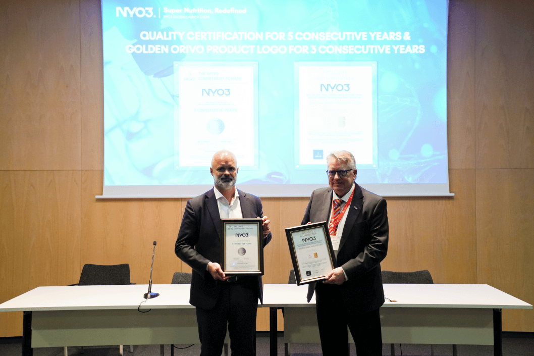 面对全球膳食营养需求的升级,NYO3始终坚持品质与创新并行。2025年,品牌荣誉之路再进新阶:荣获ORIVO“连续5年品质零缺陷”和“连续三年金标品质”双重品质认证;并凭借卓越的市场表现,斩获欧睿国际(Euromonitor)“连续2年全球磷虾油销量领先品牌”与“高磷脂磷虾油销量第一品牌”双项殊荣,进一步巩固其“安全、高效、可信赖”的全球口碑。
