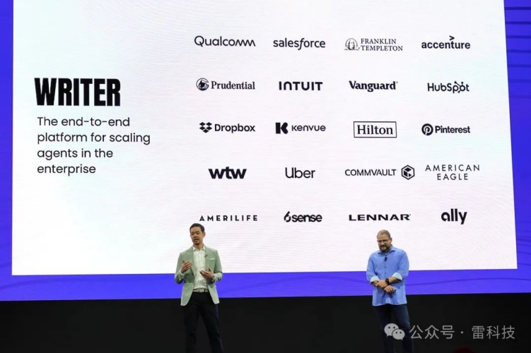 Writer 也是一个绝佳的例子。作为首个将完整且可扩展的 AI 解决方案推向企业市场的应用,Writer 不仅能根据需求生成内容,更能跨系统协调数据、自动填充流程、学习用户语言风格,在组织级别释放效率。而据 Writer 首席战略官 Kevin Chuang 现场介绍,高通已经将其引入内部,并且帮助员工每月节省超过 2400 小时,带来高达 9 倍的 ROI。