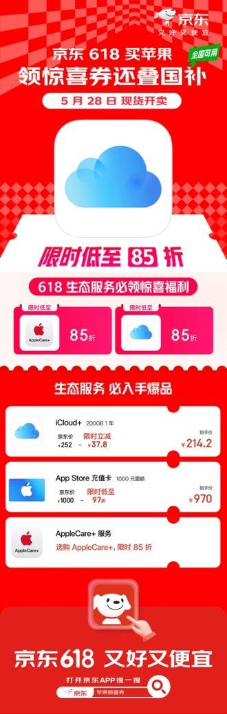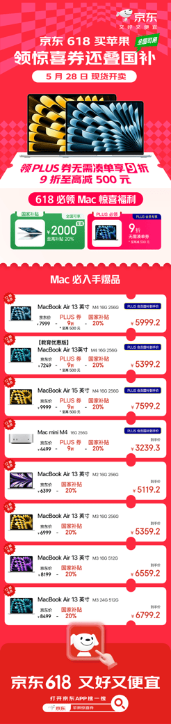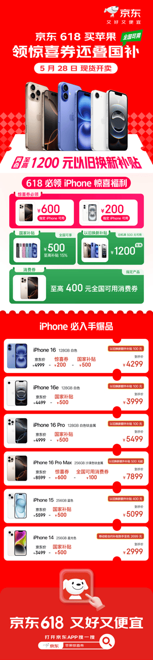 真正的618,从5月30日晚8点开启!无论你是想入手iPhone、iPad还是Mac,在京东都有心动的价格。想要快速入手的果粉们,记得每晚8点打开京东搜索“苹果惊喜券”在活动会场抢1200元以旧换新券,千万别错过。