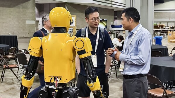 在ICRA 2025现场,开普勒人形机器人展台的参观者络绎不绝,K2"大黄蜂"热情地和到访者们挥手打招呼、步履稳健地在场馆中行走、与其他的机器人"同行"友好互动,引得人们举起手机拍摄,还有不少参观者热情地与它合影。