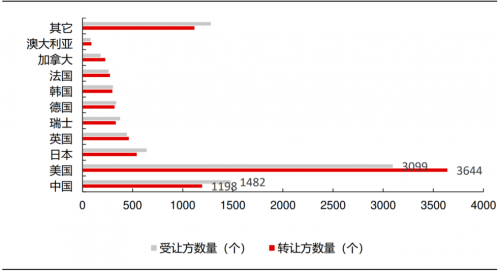 从2018年至今的医药交易公司总部地区统计,美国企业数量位居第一(转让方3644,受让方3099),中国以转让方1198个、受让方1482个,中国已成为全球医药交易的重要力量,中国本土药企已逐步具备输出产品/技术的实力。