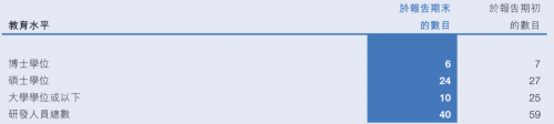 公司的研发人员团队学历极高。截止到2024年底,公司的40位研发人员中,硕士及以上学历占到3/4。