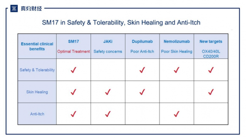 图6:中国抗体SM17在安全性、耐受性、皮肤修复以及止痒等方面优于其它竞争对手