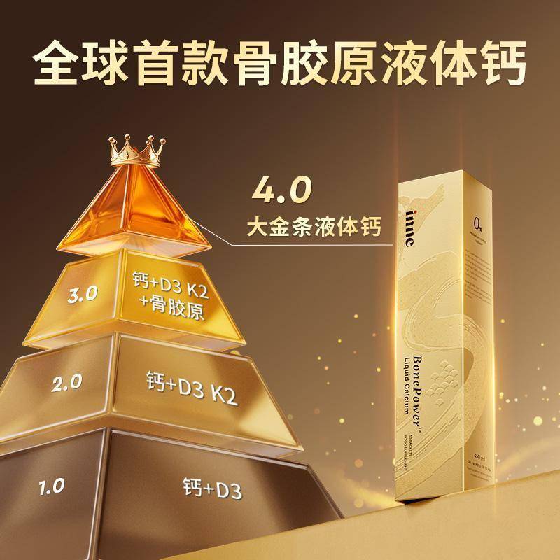 inne因你大金条液体钙,解决了传统钙片补钙引起的便秘、胀气问题。大金条液体钙独家添加骨胶原,直击成人“补钙不锁钙”的痛点,通过补充骨胶原,降低成人骨骼钙的流失,增强骨骼的韧性和强度。“补钙 + 骨胶原”的双重突破,inne 大金条液体钙为国民骨骼健康提供了更科学、更有效的解决方案,临床实验证实,其专利配方可8周显著缓解腿疼抽筋,提升骨密度,直击35岁后骨钙加速流失的核心痛点。