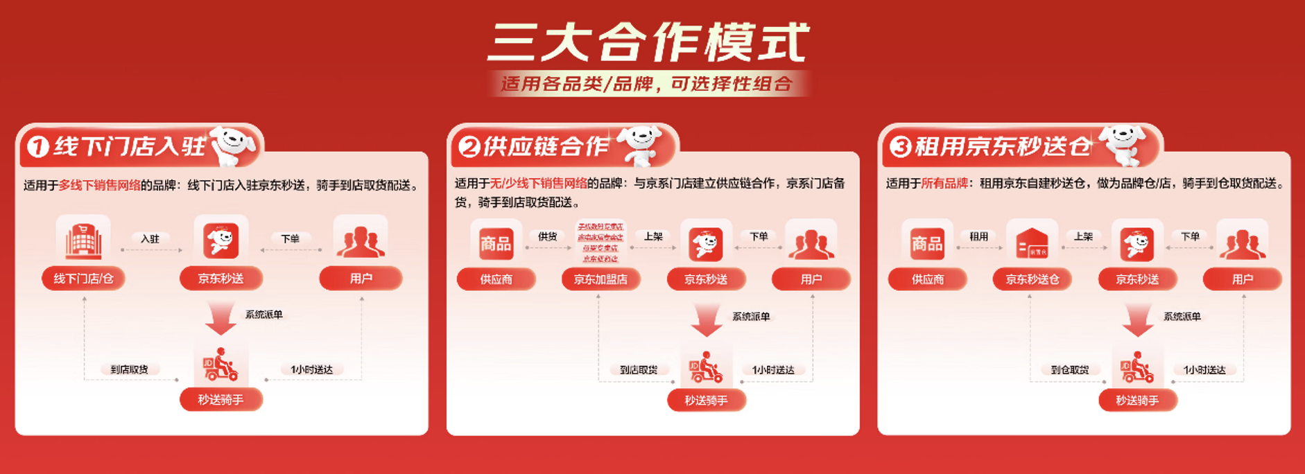 对于各行各业的消费品牌来说,即时零售的重要性已不言而喻,但拥抱即时零售时却痛点不少。为了同时满足多类型品牌的转型需求,京东秒送业务创新推出了线下门店入驻、供应链合作、共建秒送仓3种合作模式,可进行组合性选择。通过对品牌线下门店网络,京系线下优质门店以及秒送仓的整合,京东为广大品牌提供了灵活且高效的供应链解决方案。