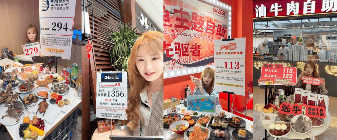“吃完这顿就减肥”标志性口号也让她在本地客单价高达600+一位的优质地标性海鲜自助合作中,创下单场最高支付100万GMV的好成绩,打破官播88万记录,成为当之无愧的自助餐饮带货女王。