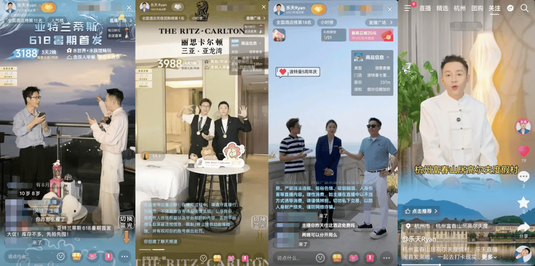 酒店品类达人@乐天Ryan 主持人出身,拥有多重身份,是贵州乡村振兴旅游形象大使、贵州特聘文旅推荐官。25年转型尝试酒店赛道。在「品类推荐官」的活动中,合作雅高集团旗下三亚理文索菲特酒店,采用“室内棚播+多主播出境”的内容展示,达成4小时支付GMV103万的成绩。