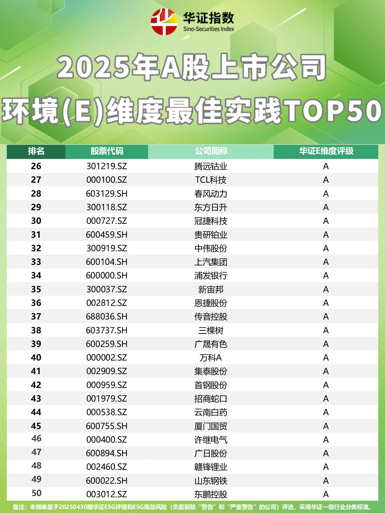 2025-07-10 16:23:47 来源:搜狐网 作者: 摘要:近日,上海华证指数信息服务有限公司发布最新ESG评级数据,恩捷股份(股票代码:002812)ESG评级显著提升从去年同期的BB级跃升至A级,并成功入选"2025年A股上市公司环境(E)维度最佳实践TOP50"榜单,位列第36名,彰显其在环境责任领域的卓越表现。