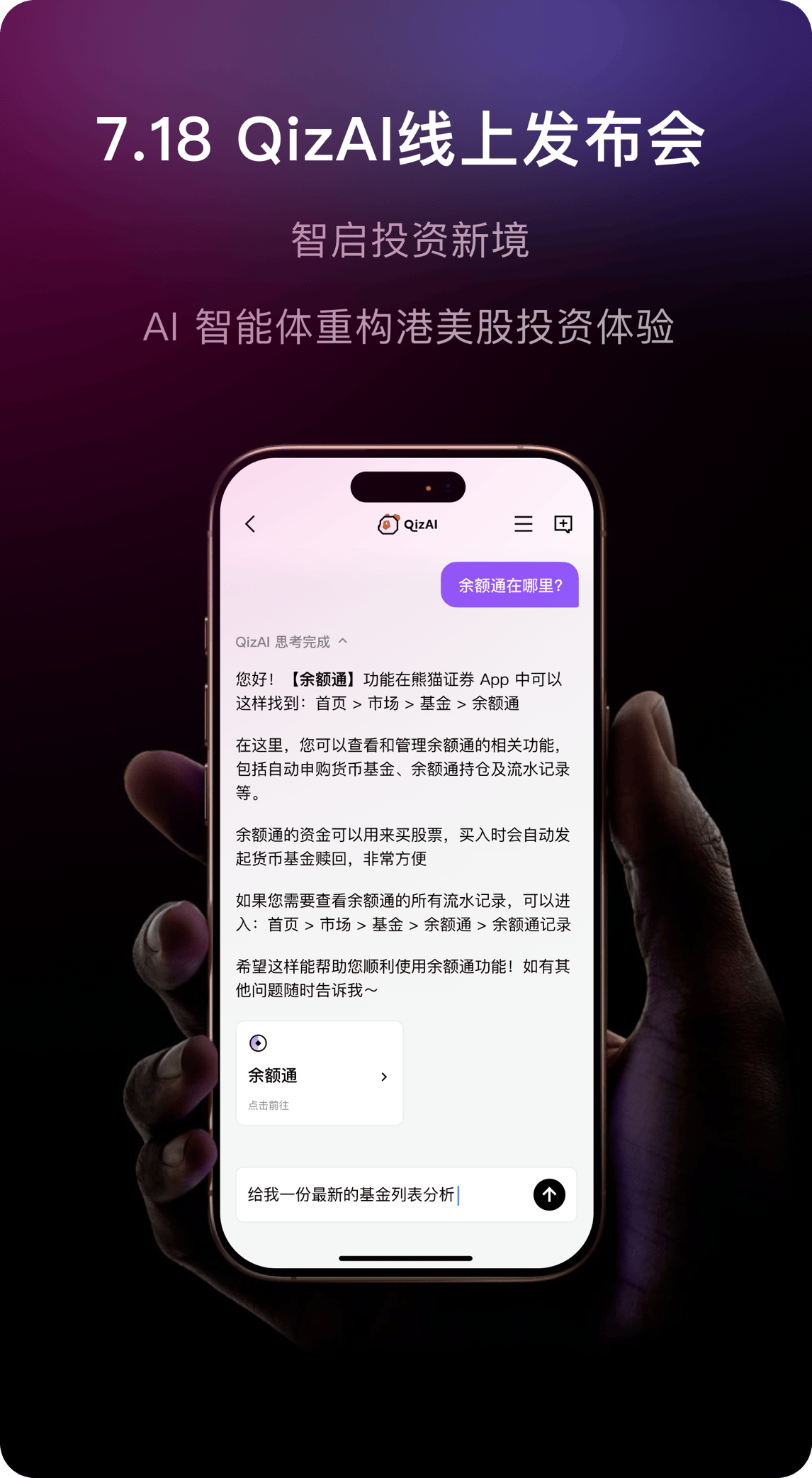 业内分析人士认为,QizAI的推出标志着金融终端开始进入“对话原生”时代。该模式通过服务获取便捷化、交互体验自然化、价值创造持续化三大特征,重新定义金融服务标准。随着技术迭代深化,其有望成为行业智能化转型的基础设施。熊猫证券创立至今,始终专注于证券服务两大核心技术的探索,即极速交易执行与智能交互体验,并通过工程创新降低专业投资门槛,为全球用户提供高可控性、易使用的解决方案。QizAI正是熊猫证券从证券服务向智能投资伙伴的升级的一次跃迁实践。