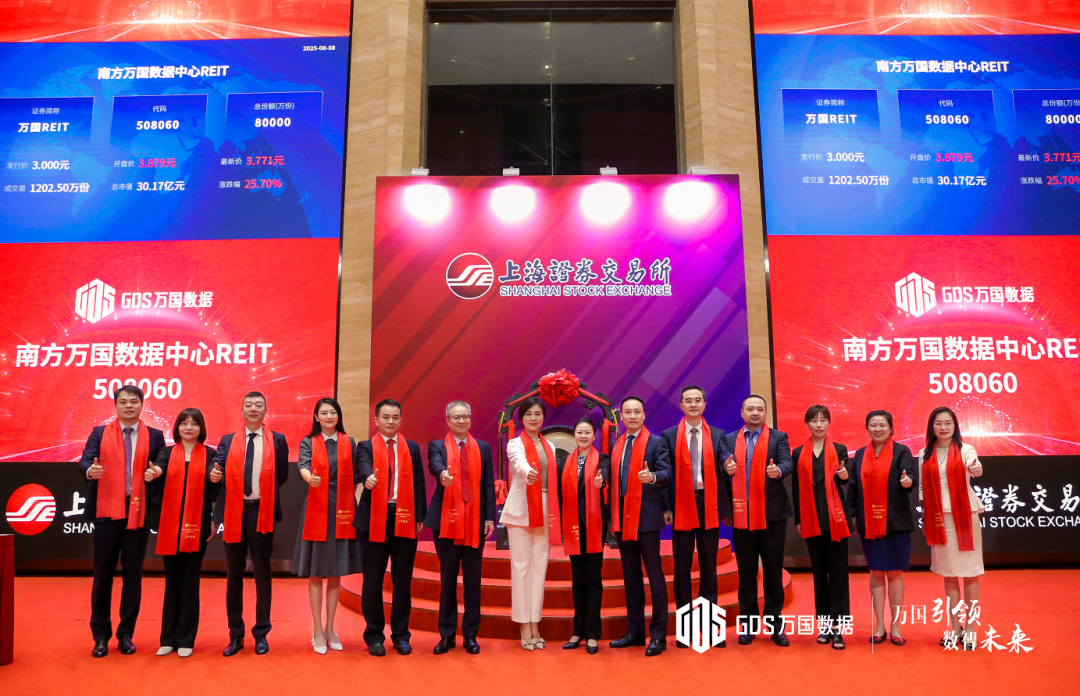 2025-08-09 12:53:01 来源:中金在线 作者: 摘要:今日,南方万国数据中心封闭式基础设施证券投资基金(以下简称“南方万国数据中心REIT”,基金代码:508060)在上海证券交易所成功挂牌,上市首日涨幅达30%。