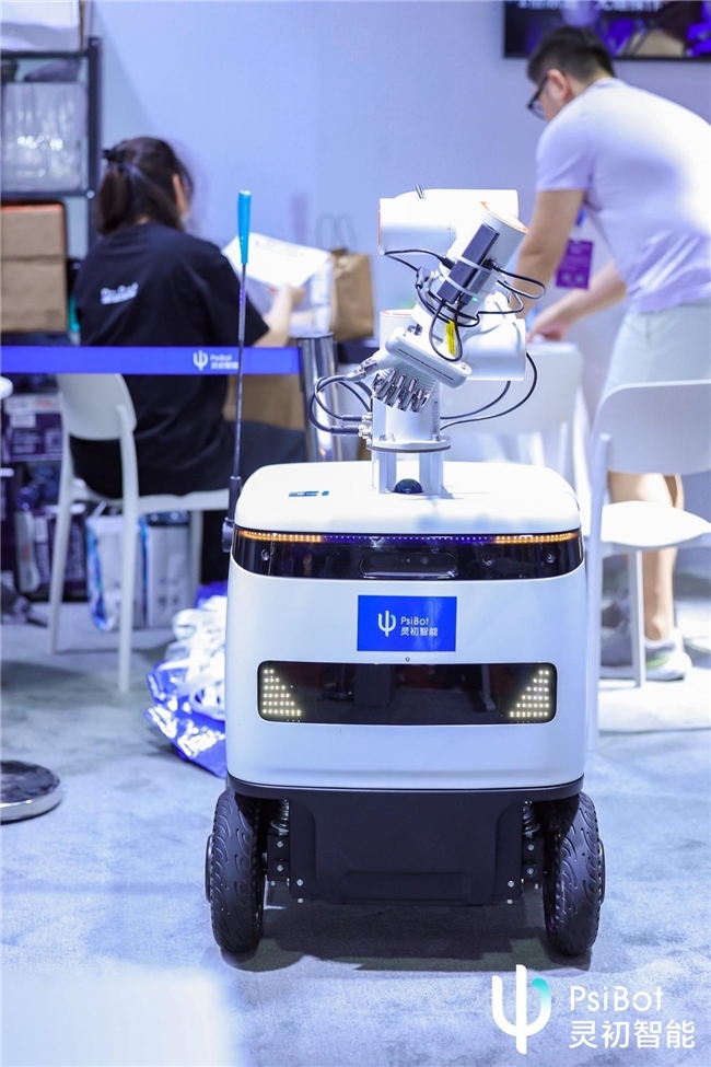 在物流配送应用展示中,灵初智能外卖配送机器人演示了"最后一百米"配送难题的解决方案。面对快递袋、纸袋等多样化、易变形的配送物体,机器人精准识别不同形态与摆放姿态,灵巧手如人手般灵活穿过提环并稳固握紧,凭借强大的泛化性和动态性能,还能对变形物体进行处理,无论何种规格、轻重的袋子都能安全稳定地提起。整个过程实现端到端的自动化操作,无需人工干预。在实际配送场景中,该机器人能够自主导航至目标位置,灵活避开行人和障碍物,配备7自由度机械臂和6自由度灵巧手,能够处理3kg负载的配送任务,为外卖、物流配送场景提供了完整的智能化解决方案。
