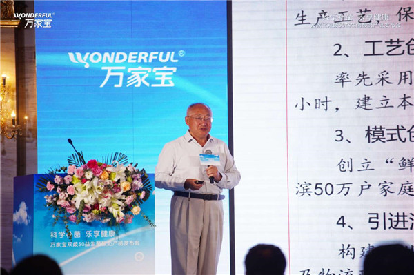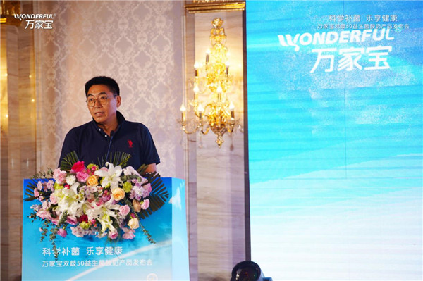 随后,万家宝鲜牛奶集团研发中心总经理张冰岩通过一则小故事生动的讲述了双歧杆菌是如何守护肠道健康的。同时揭开了“双歧50益生菌酸奶”的新品上市的序幕。