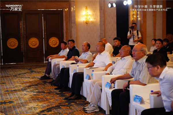 8月27日上午,“科学补菌 乐享健康”万家宝双歧50益生菌酸奶产品发布会在哈尔滨巴黎四季酒店精彩开幕。哈尔滨经开区管委会副主任、平房区政府副区长许思源,国务院政府特殊津贴专家、食品科学与工程教授、博士生导师张守文,东北农业大学教授、博士生导师、食品学院原院长霍贵成,黑龙江省食品科学技术协会理事长、哈尔滨商业大学食品工程学院教授石彦国,哈尔滨市老字号企业协会秘书长岳同明,万家宝鲜牛奶集团执行董事、正高级工程师、黑龙江省食品科学技术学会副理事长韩俊,万家宝鲜牛奶集团研发中心总经理、东北农业大学万家宝健康营养研究中心主任、食品工程高级工程师张冰岩,东北农业大学食品学院高级工程师、万家宝鲜牛奶集团技术顾问程涛,东北农业大学食品学院副教授、万家宝鲜牛奶集团科技总师时佳,哈尔滨鹏业包装有限责任公司董事长高峰以及行政总经理高鹏,哈尔滨天网电子商务有限公司总裁陈智聪,北京沙普视科贸有限公司销售总监周鸿儒,黑龙江远大购物中心有限公司好百客采购经理王曦茁,黑龙江远大群力购物中心有限公司好百客采购经理李洋以及万家宝鲜牛奶集团本部总经理徐慧群、销售运营部总经理霸广禄、娟姗智慧牧场总经理柴宝全、智能工厂总经理付立明、财务中心高级经理段丽华、人力资源中心高级经理唐道岩,万家宝南极食品业务群营销总经理李嘉松、运营总经理赵峰、高级经理朱雅玲等领导及多家媒体、老客户代表、合作伙伴参与此次活动。