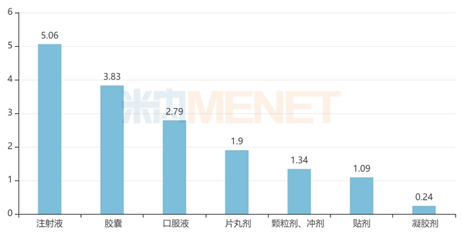 7款中药新药处于Pre-NDA或III期临床。其中,双鱼颗粒(流感)、紫辛鼻鼽颗粒(鼻炎)、热毒宁颗粒(流感)、麻杏止哮颗粒(支气管哮喘)均为呼吸系统用药。米内网数据显示,2024年中国三大终端六大市场呼吸系统中成药销售额超过840亿元。