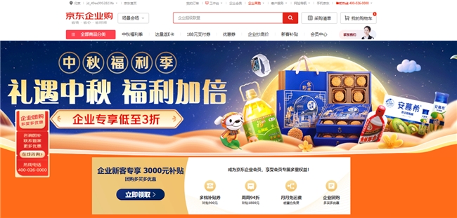 在京东企业购面向企业客户推出的“中秋福利季”活动中,不仅为各行各业的企业客户带来了覆盖团建出游、员工福利、办公采购等众多场景的商品物资,还提供了企业专享价低至3折、大牌手机低至72折、月饼满2000减80、PLUS会员折上95折等优惠,让企业采购人尽享省钱、省心、省时间的一站式采购体验。