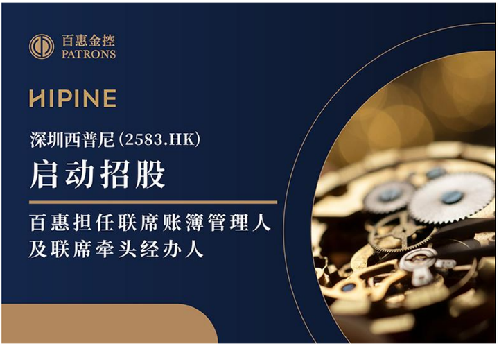 深圳西普尼精密科技股份有限公司(以下簡稱“深圳西普尼”),股票代码2583.HK,于2025年9月19日至9月24日期间招股,百惠金控团队担任联席账簿管理人及联席牵头经办人。