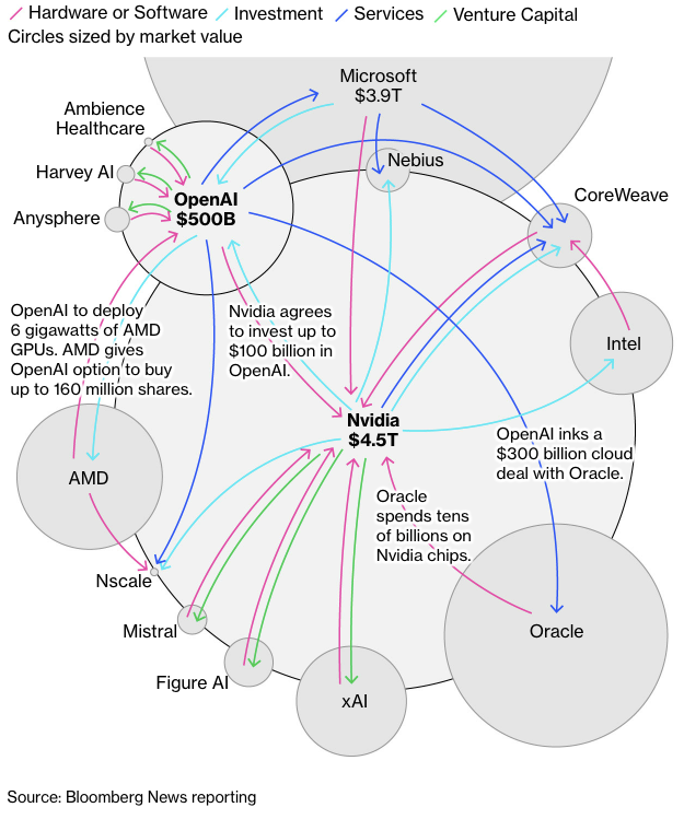 在人工智能成为全球科技竞争焦点的今天,一个令人瞩目的现象正在发生。英伟达向OpenAI投入1000亿美元,OpenAI承诺以相当规模采购英伟达芯片;同样的循环投资模式又在AMD、CoreWeave等公司之间不断复制。这种“左手给右手”的资本运作方式引发了广泛关注和担忧——我们是在见证一场新技术革命的爆发,还是正处于一个精心包装的金融泡沫之中?
