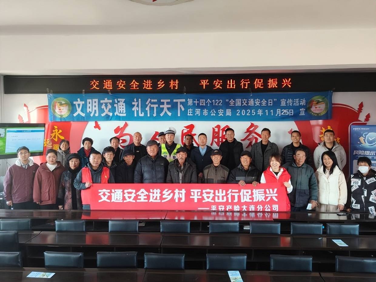 为深入贯彻落实乡村振兴战略,切实提升农村地区群众交通安全意识,有效预防和减少道路交通事故发生,2025年11月26日,平安产险大连分公司联合庄河市交警队在青堆子镇牌坊村共同开展"交通安全进乡村,平安出行促振兴"主题宣传活动,为美丽乡村建设筑牢交通安全防线。